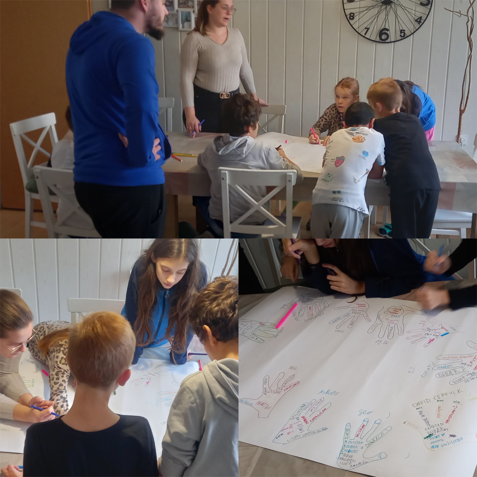 Danas smo zajedno s našim odgajateljima na velikom plakatu ocrtavali svoje dlanove. U šarenilo naših različitih dlanova svatko od nas